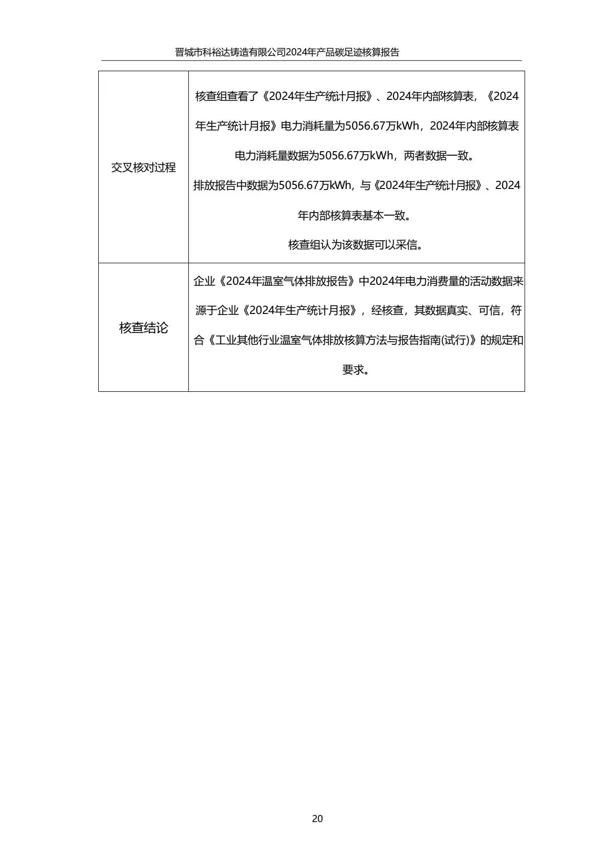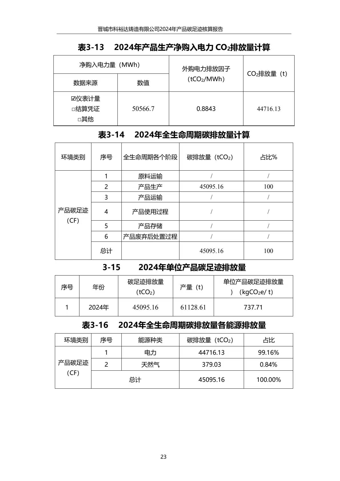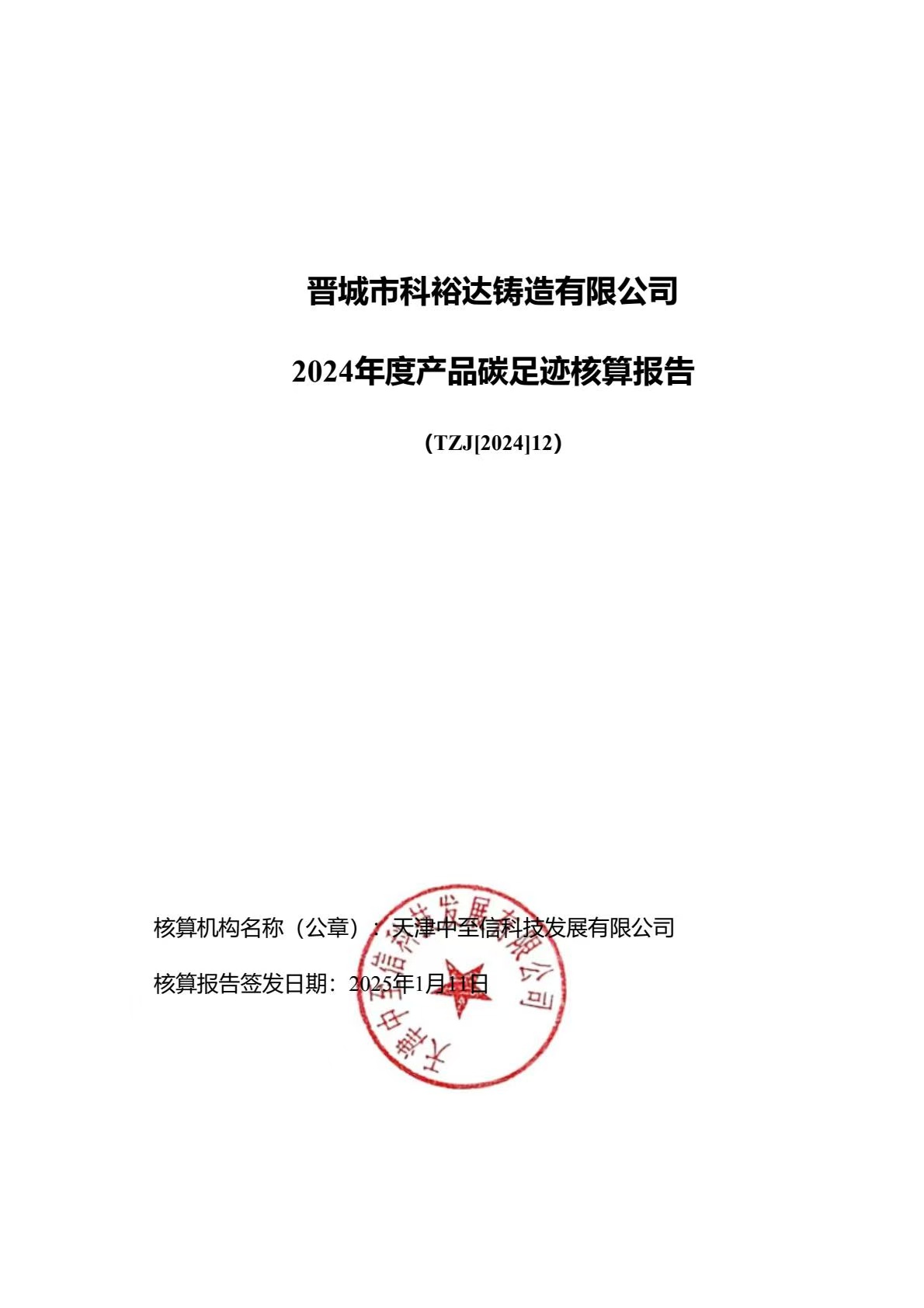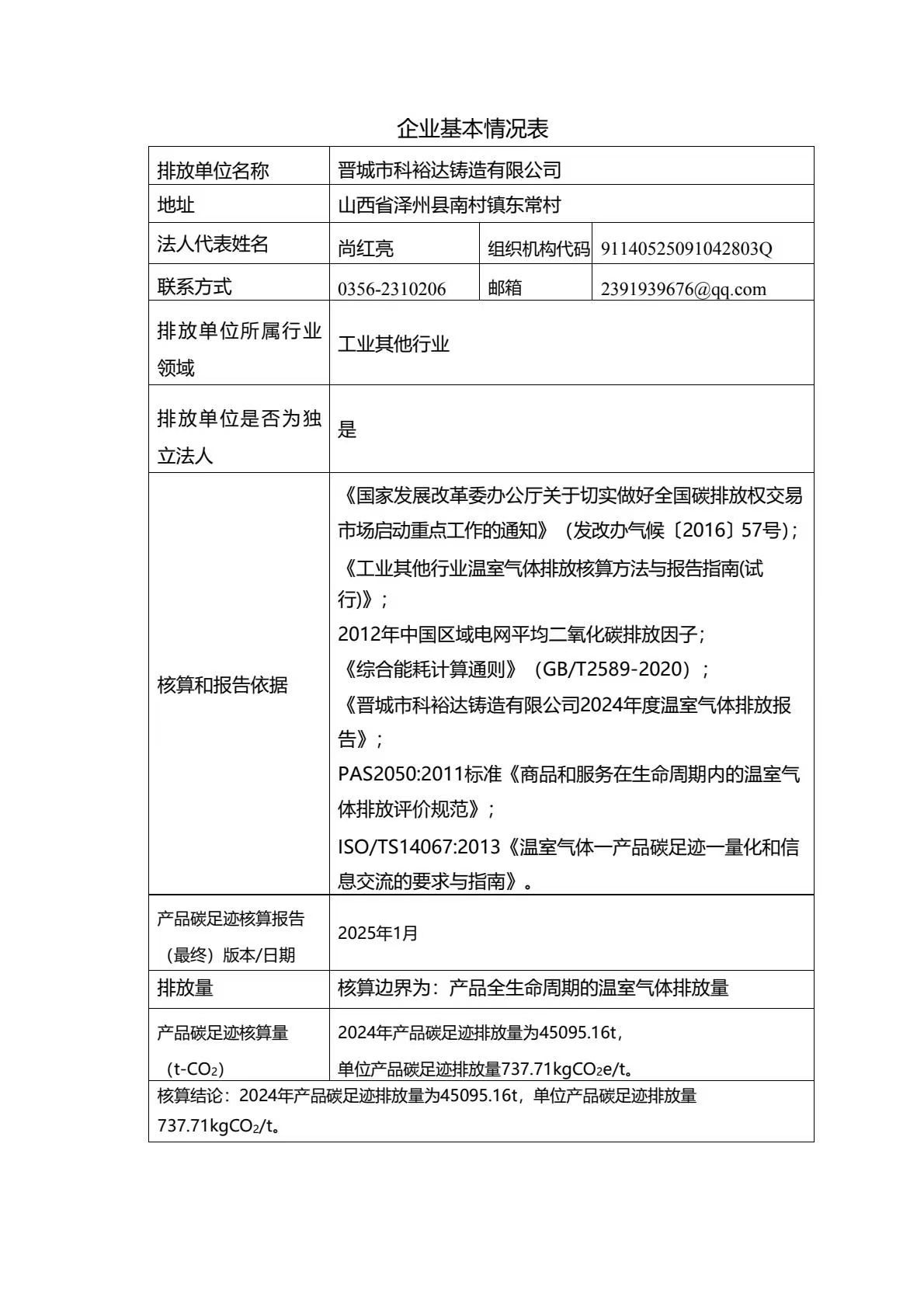 晉城市科裕達(dá)鑄造有限公司碳足跡報告