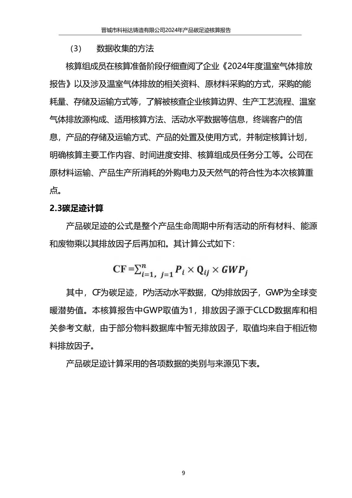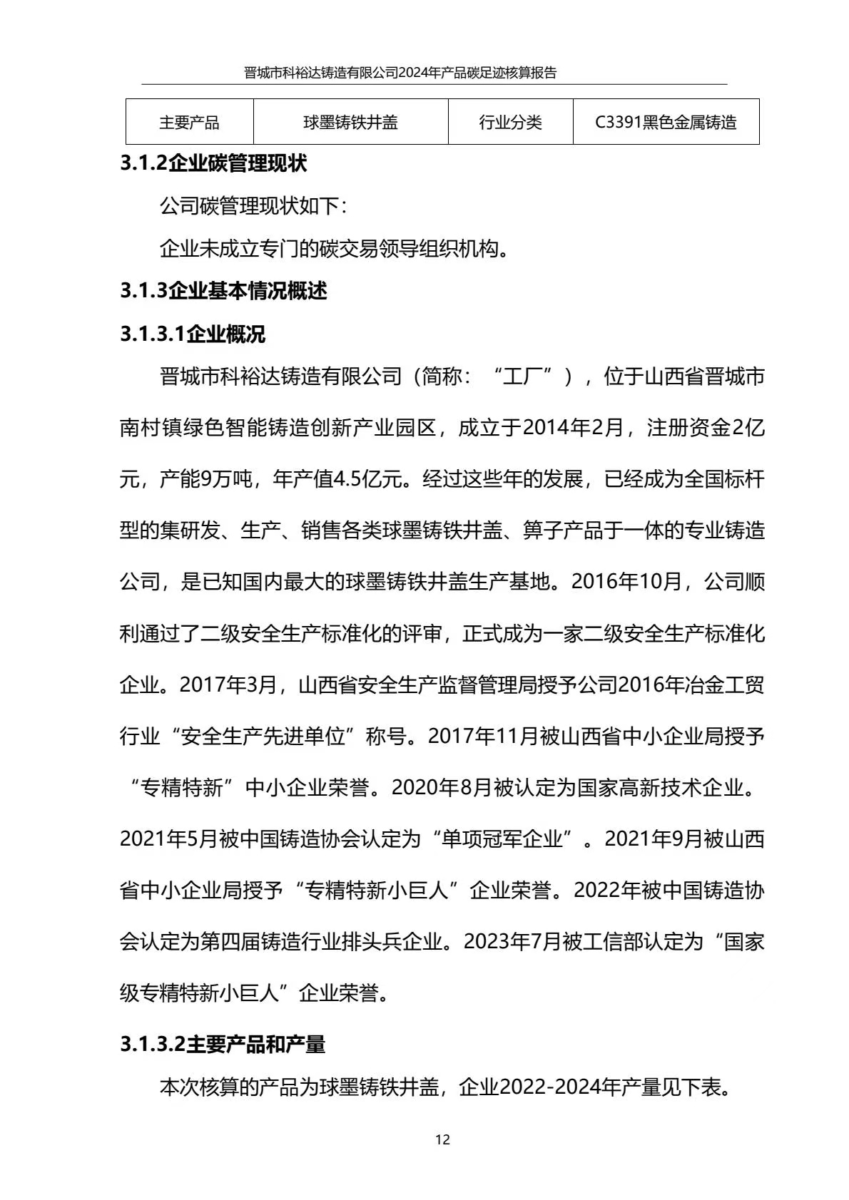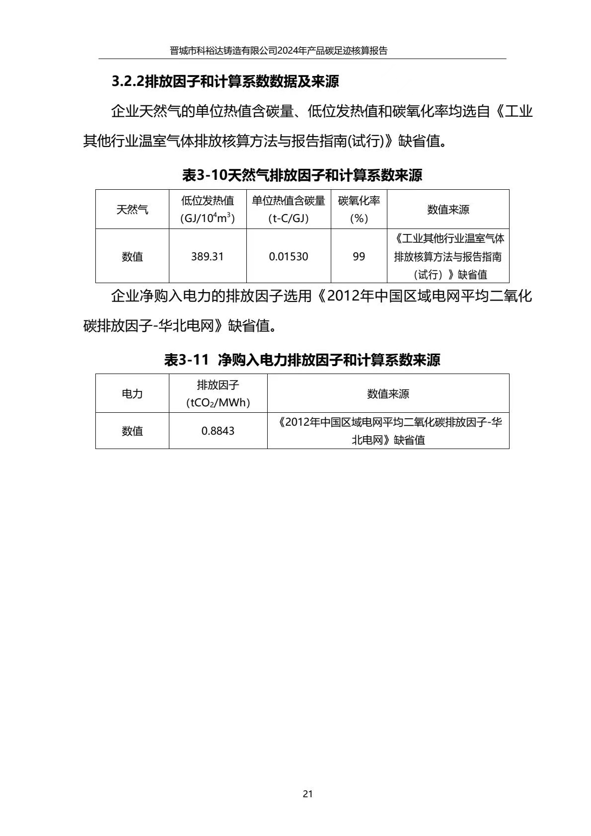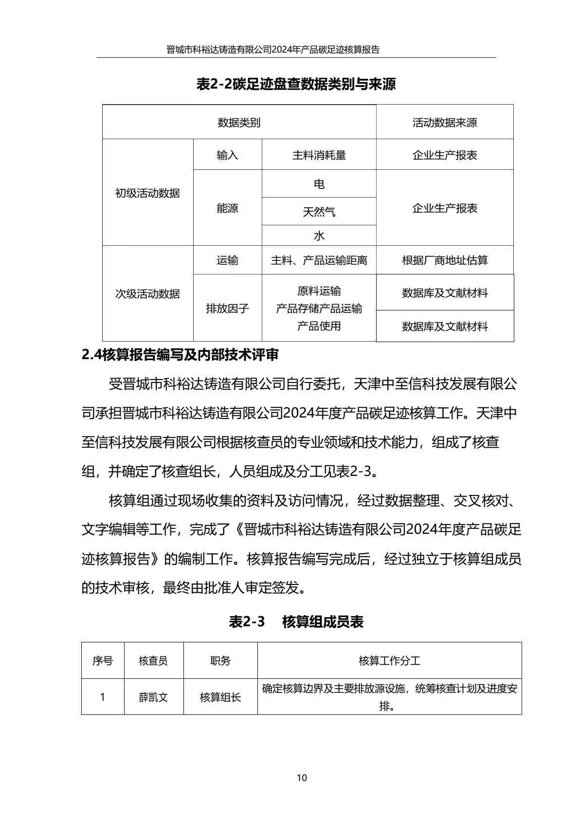 晉城市科裕達(dá)鑄造有限公司碳足跡報告