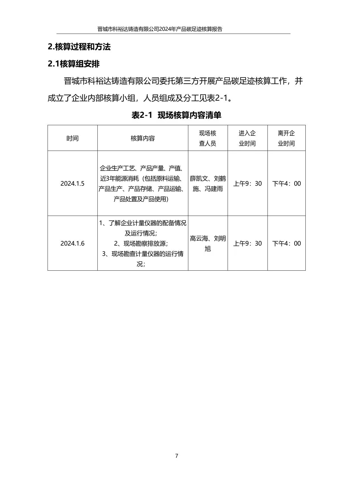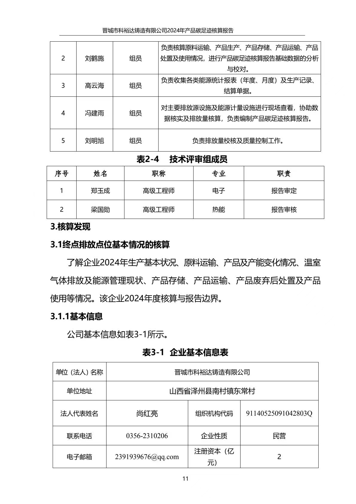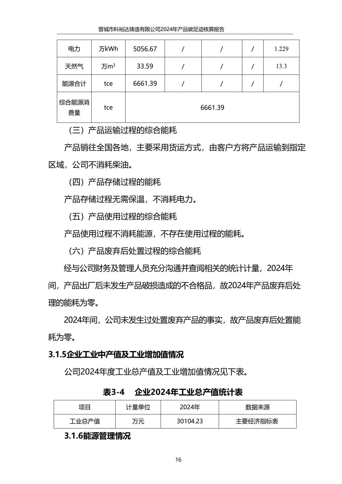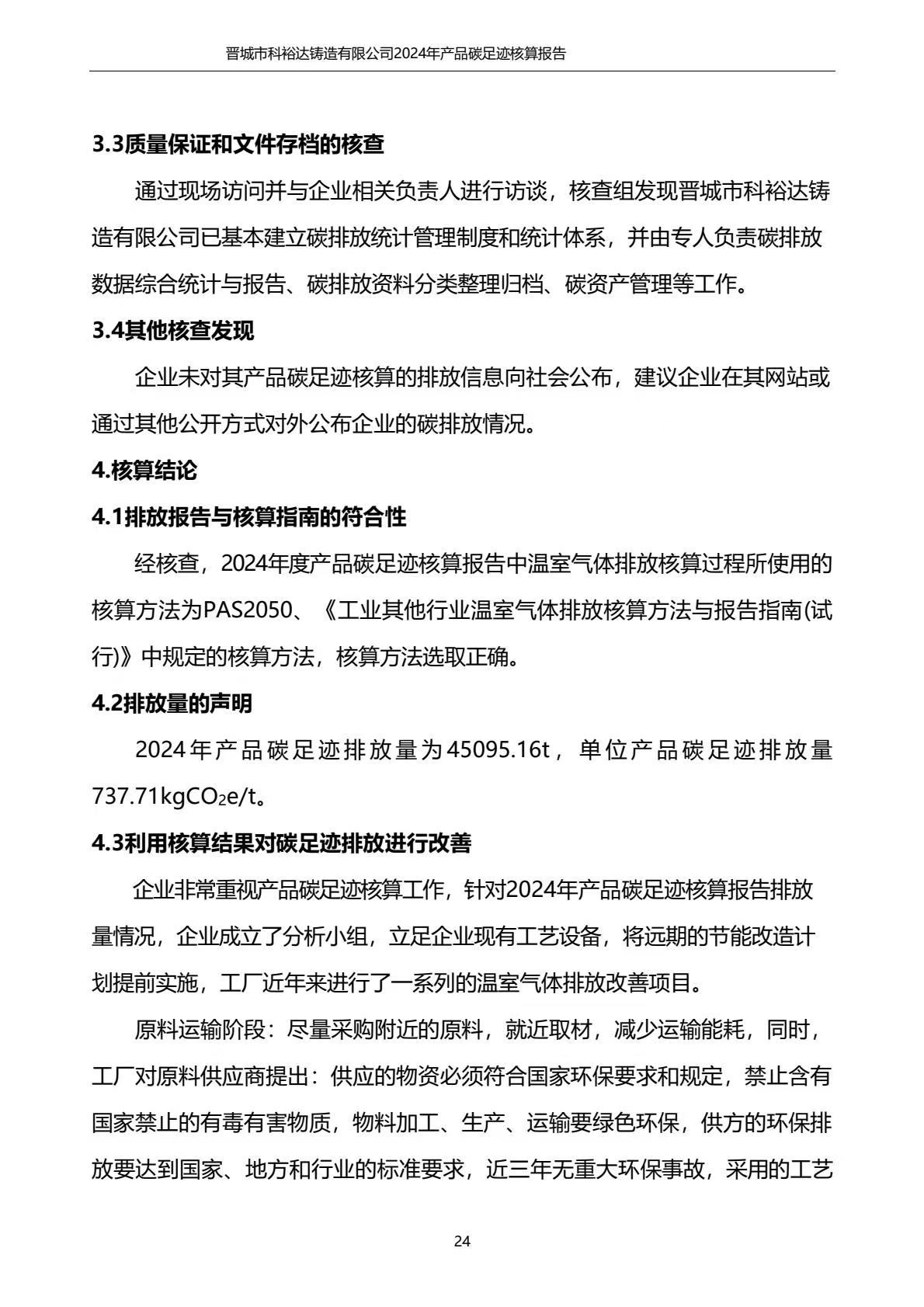 晉城市科裕達(dá)鑄造有限公司碳足跡報告
